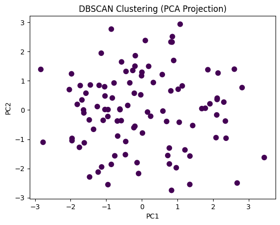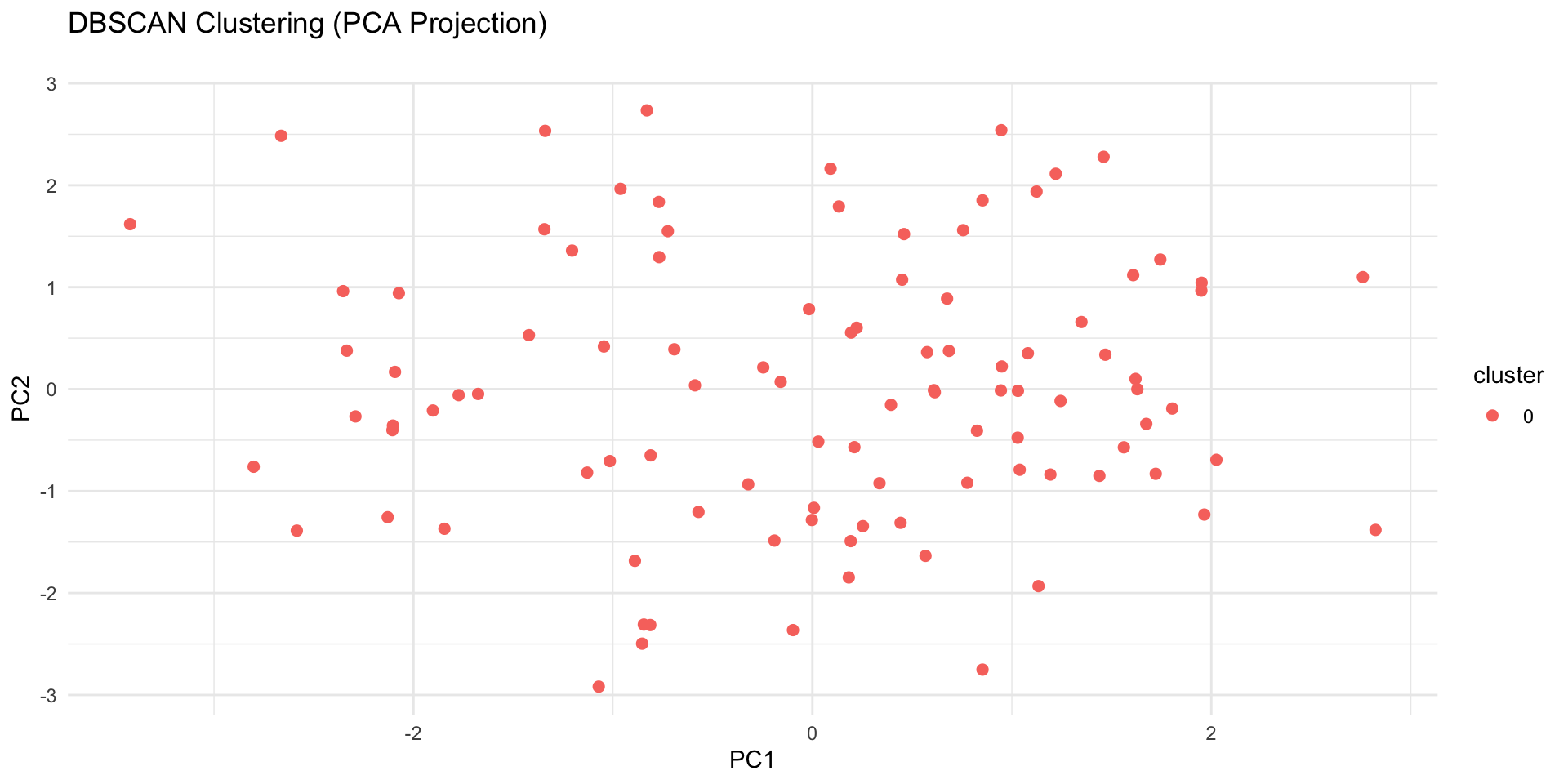 labs(title = "DBSCAN Clustering (PCA Projection)\n") +