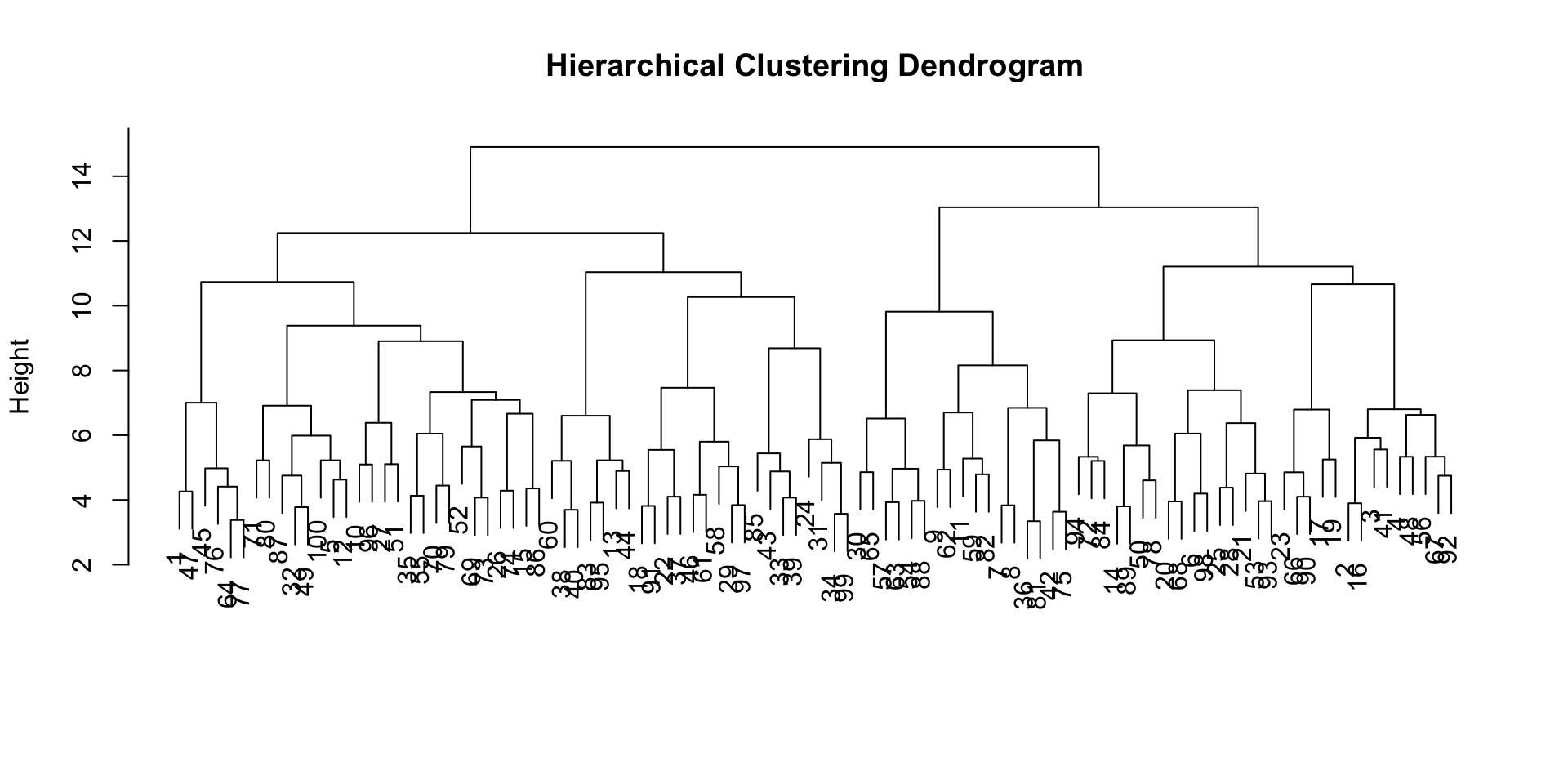 plot(hc, main = "Hierarchical Clustering Dendrogram", xlab = "", sub = "")