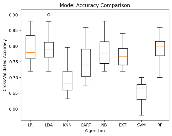 Models: LR, LDA, KNN, CART, NB, RF, SVM