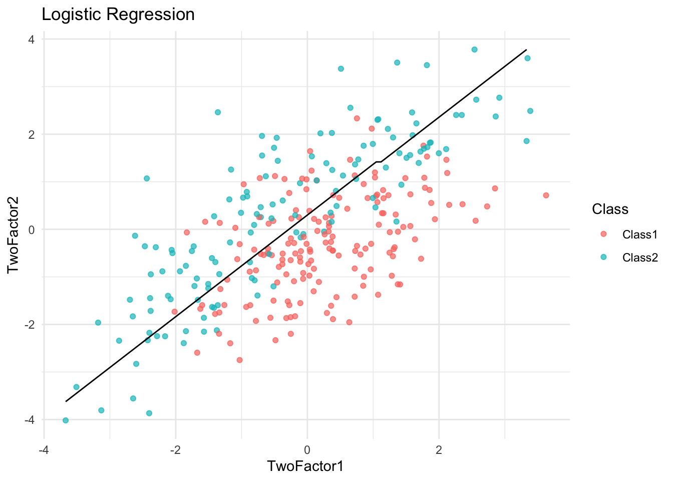 logit_model <- train(Class ~ TwoFactor1 + TwoFactor2, data = df, method = "glm", family = "binomial")